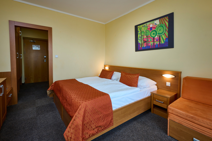 Komfortne zariadená jednoposteľová izba určená pre jednu osobu s možnosťou 1 prístelky na rozťahovacej sedačke. Priestor je navrhnutý tak, aby v ňom bolo všetko, čo potrebujete a zároveň je dostatočne útulný, aby ste sa počas svojho pobytu cítili čo najpohodlnejšie. Štandardná jednolôžková izba je prispôsobená pre imobilného hosťa.