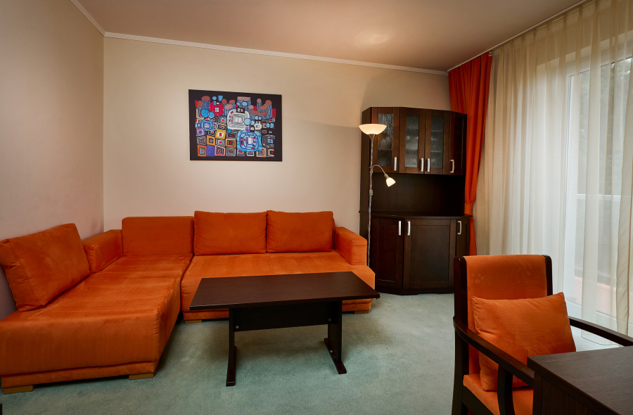 Pohodlne a vkusne zariadený Biznis apartmán ponúka priestrannú samostatnú obývaciu a samostatnú spálňovú časť. Spálňová časť disponuje jednou manželskou posteľou alebo dvoma oddelenými posteľami. V obývacej časti sa nachádza pohodlný rozťahovací gauč pre ďalšie 2 osoby.
