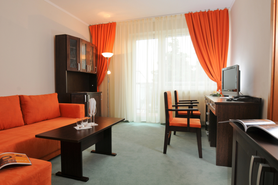 Pohodlne a vkusne zariadený apartmán ponúka priestrannú samostatnú obývaciu a samostatnú spálňovú časť. Spálňová časť disponuje jednou manželskou posteľou alebo dvoma oddelenými posteľami. V obývacej časti sa nachádza pohodlný rozťahovací gauč pre ďalšie 2 osoby. Možnosť ďalšej samostanej prístelky pre jednu osobu v spálňovej časti.